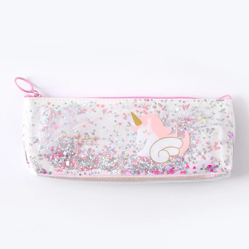 Пенал для карандашей, из ПВХ, с единорогом, цветком, блестками