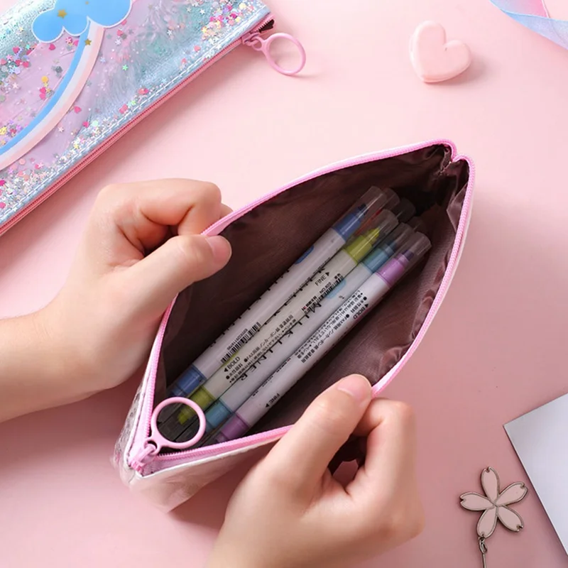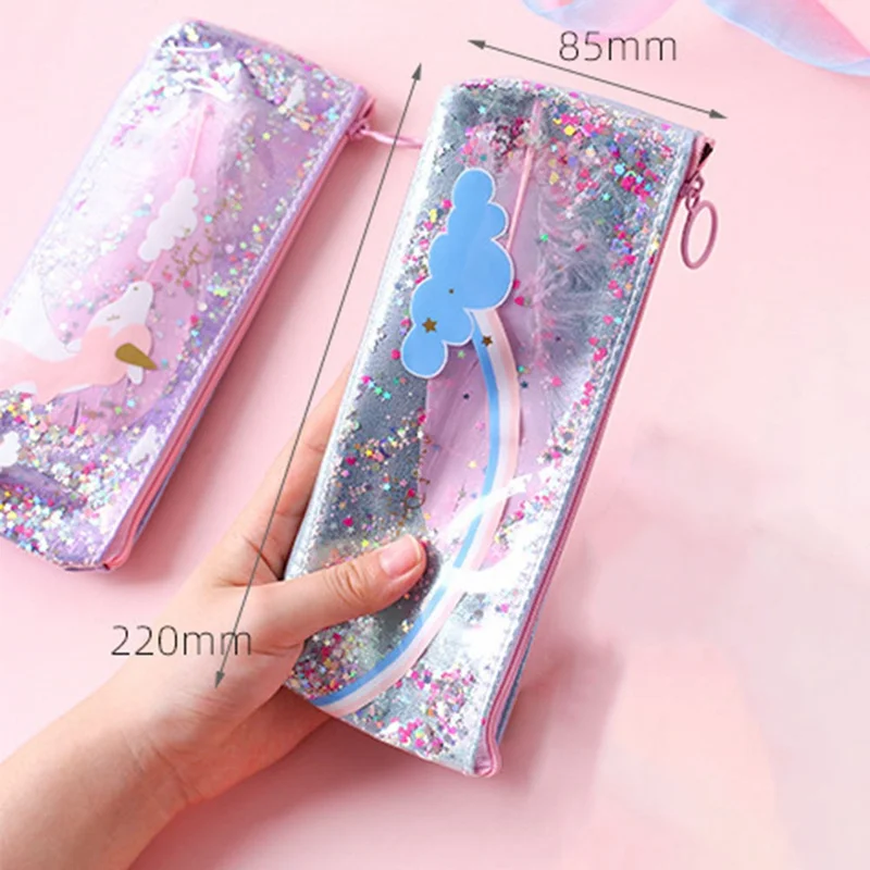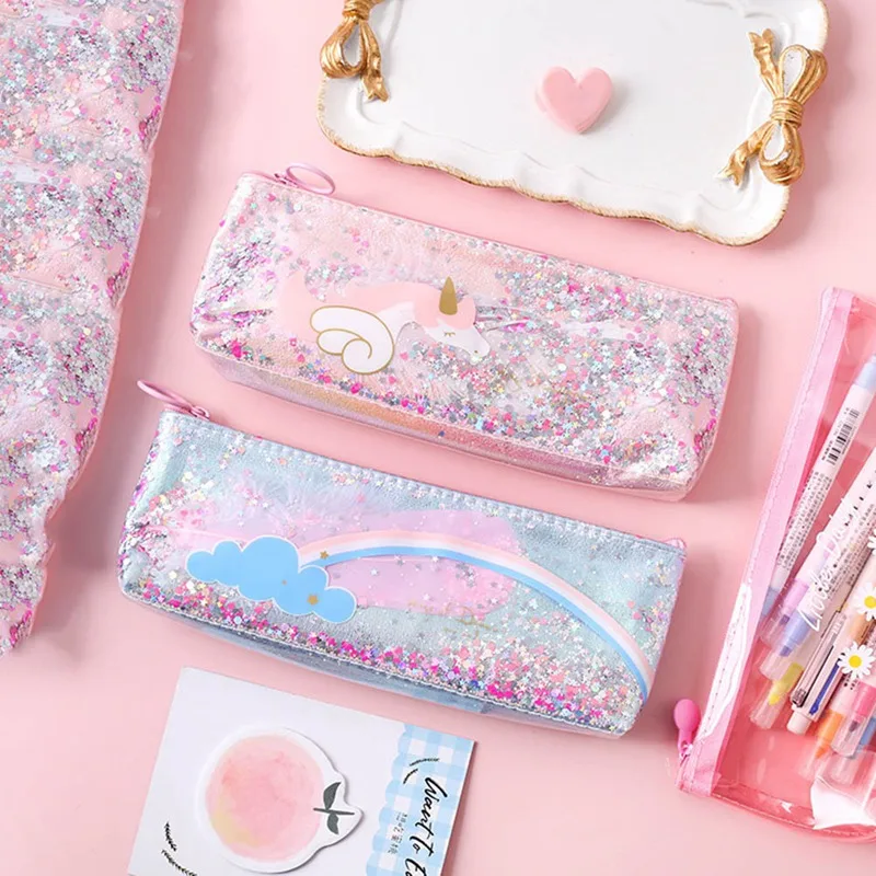 Большой чехол для ручек и карандашей с блестками в виде единорога, ...