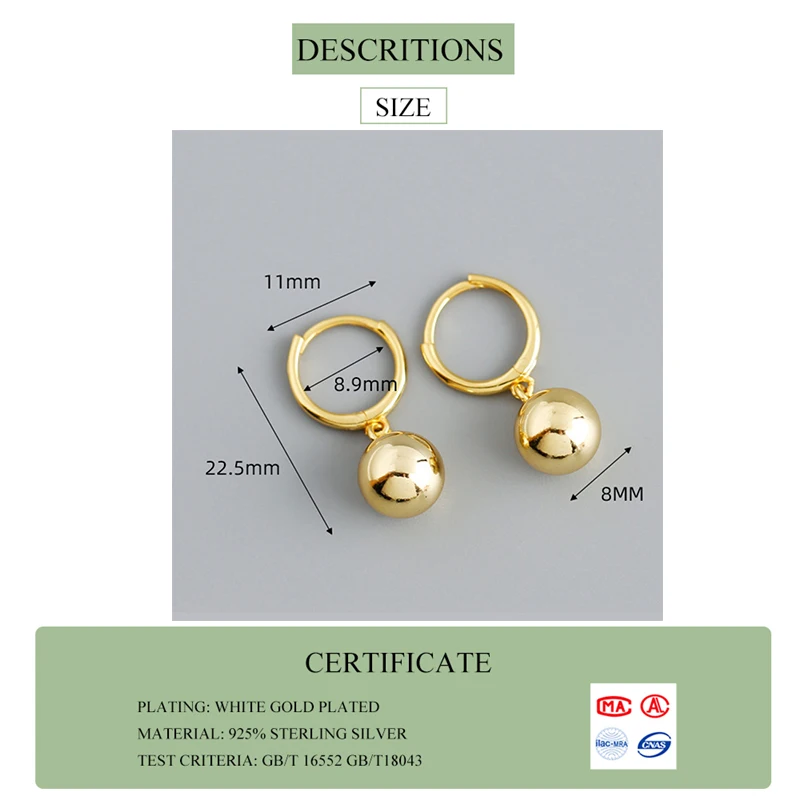 WANTME, минималистичные, Настоящее серебро 925 пробы, 8 мм, круглая...