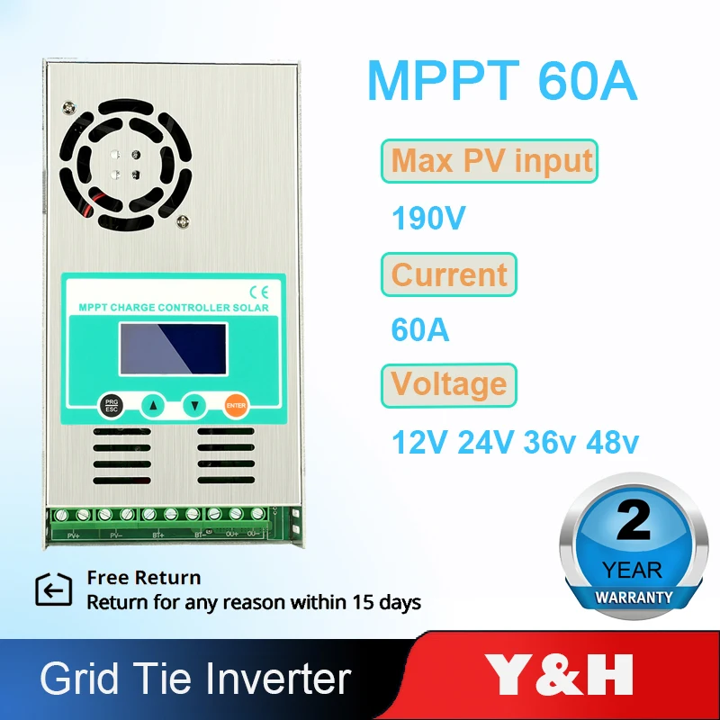 Y & H со слежением за максимальной точкой мощности, Солнечный контроллер заряда 60A Подсветка ЖК-дисплей 12V 24V 36V 48V солнечный регулятор для Max 150V Панели солнечные Вход