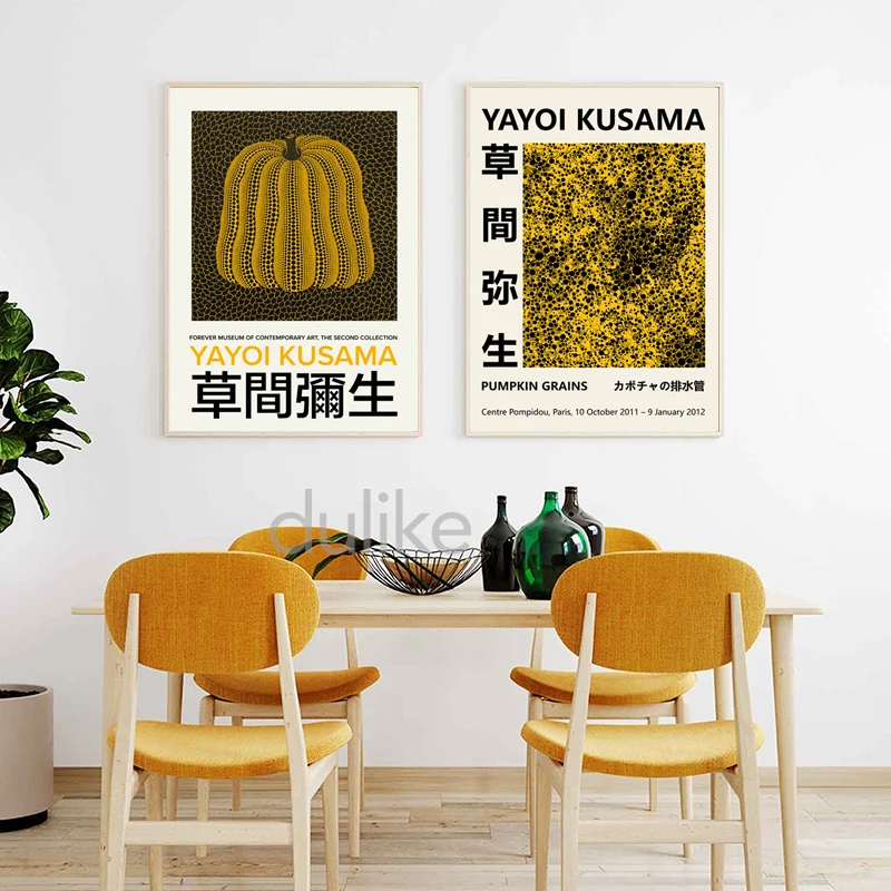 Yayoi Kusama Абстрактные Художественные выставочные плакаты и принты Тыква зерна в горошек галерея настенное Искусство Холст Живопись Декор
