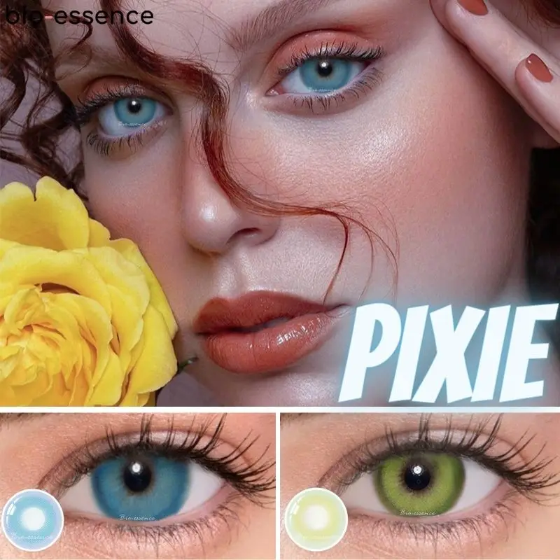 2 шт.пара цветных контактных линз по рецепту, серия зеленых Пикси для близорукости, ежегодная косметика для глаз, био-эссенция
