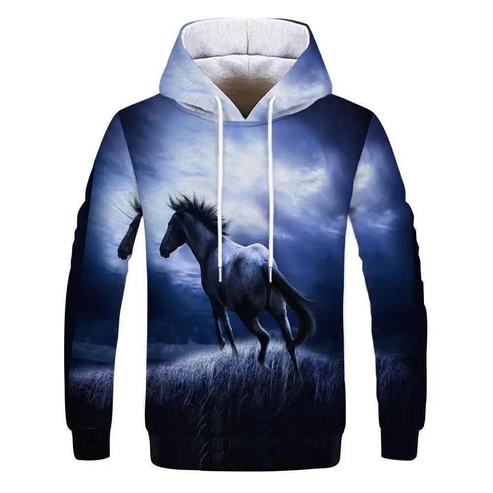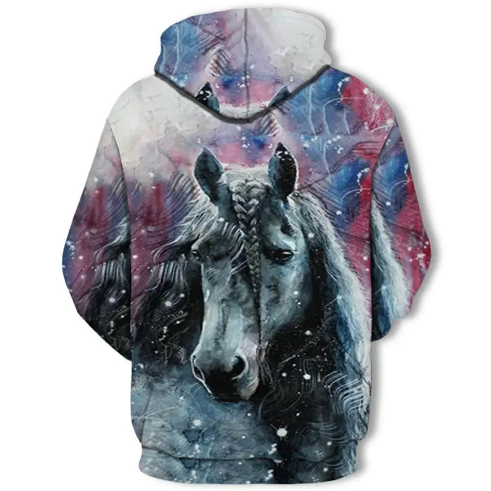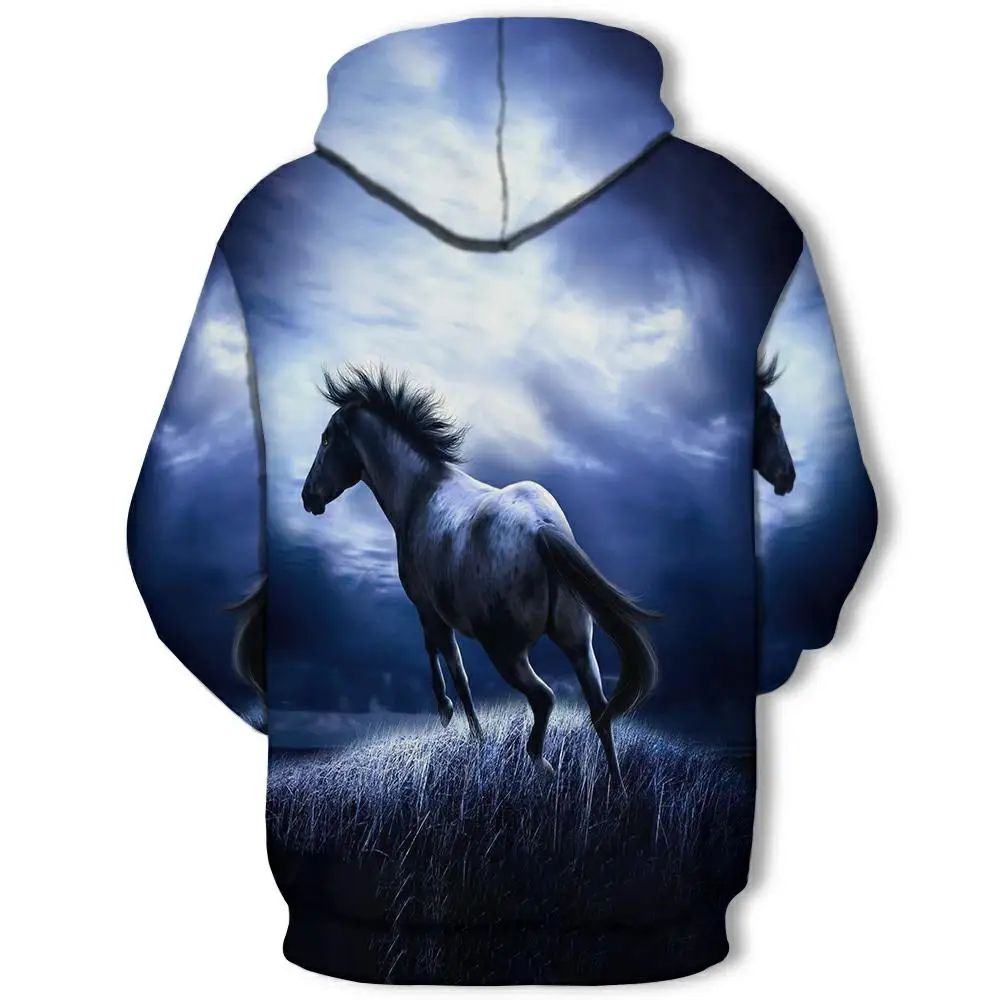 Толстовка с капюшоном для мальчиков и девочек, уличная одежда с 3d-рисунком черной лошади, свитшот с капюшоном Equus caballus, повседневный брендовый пуловер с единорогом