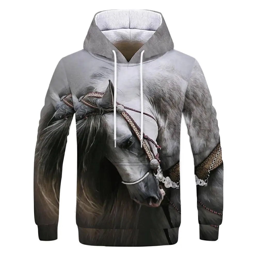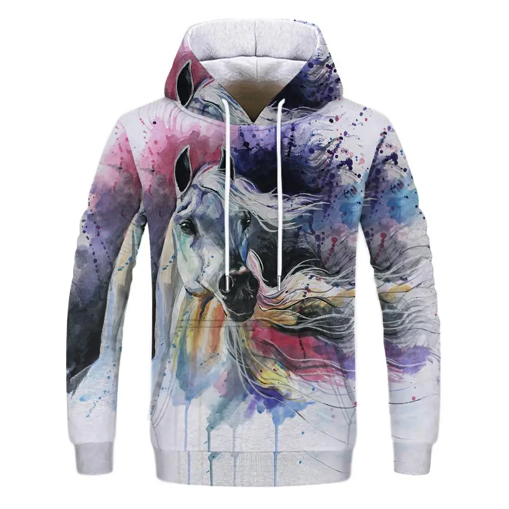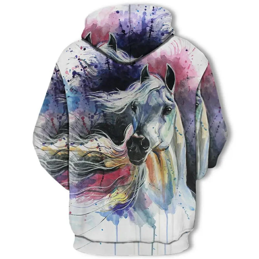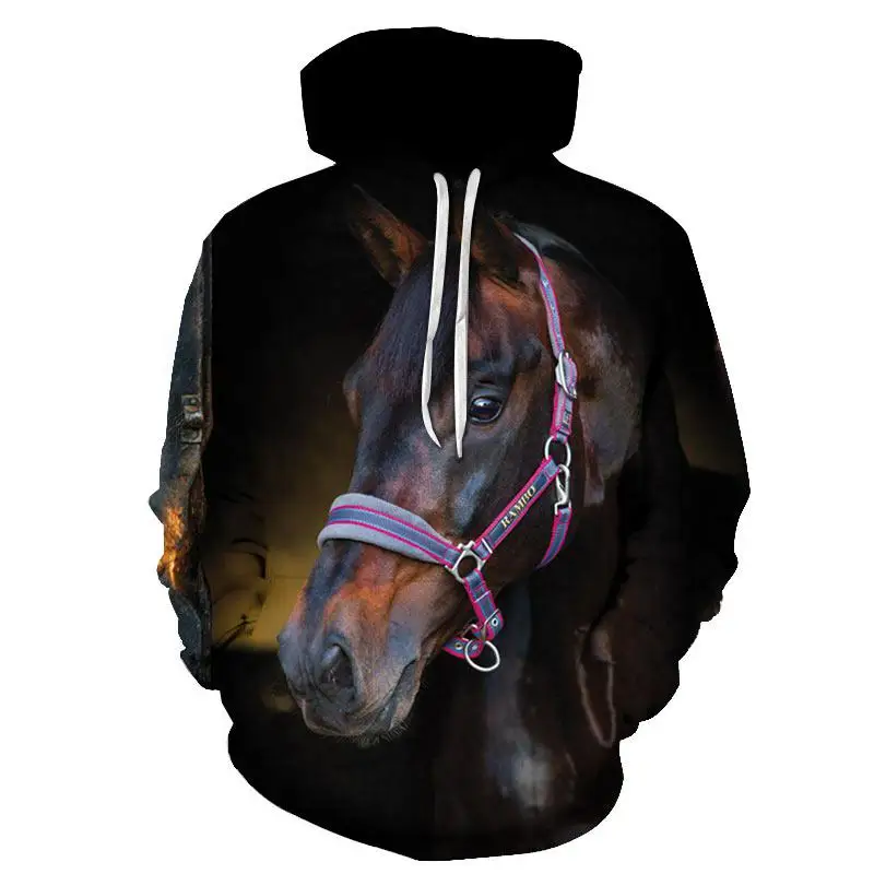 Толстовка с капюшоном для мальчиков и девочек, уличная одежда с 3d-рисунком черной лошади, свитшот с капюшоном Equus caballus, повседневный брендовый пуловер с единорогом