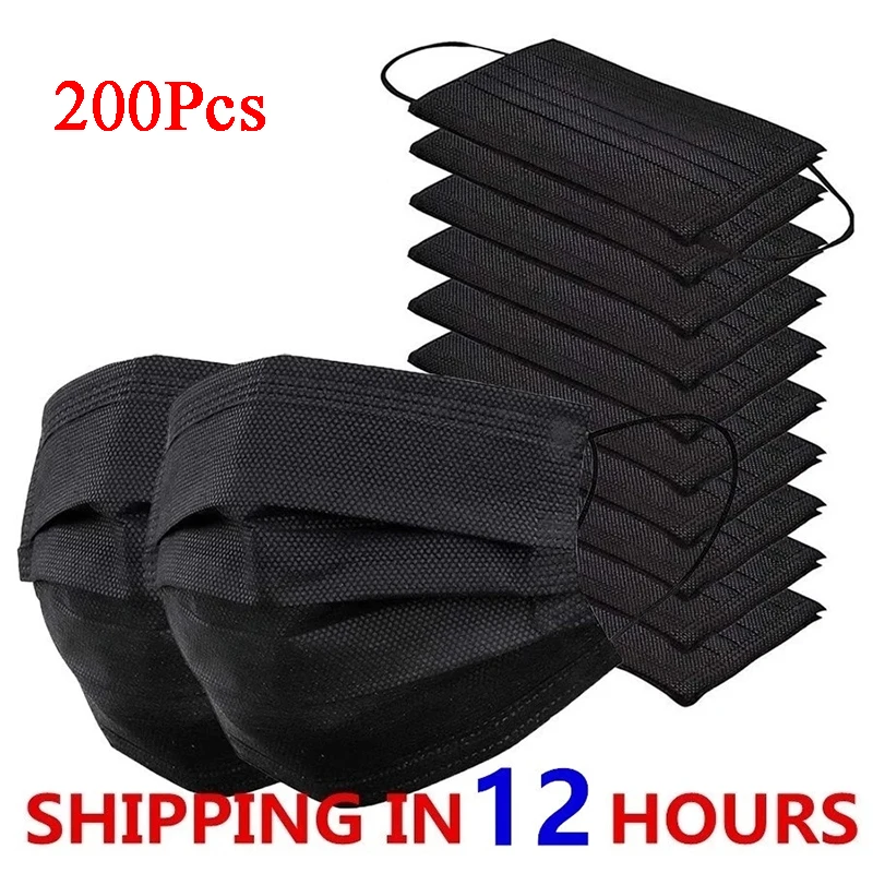 В наличии! Маска одноразовая черная 3-слойная с фильтрами, 10-200 шт.
