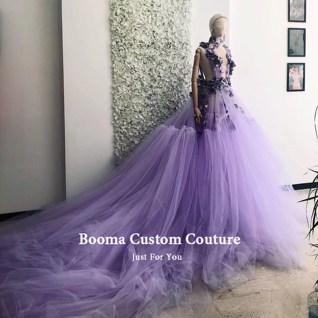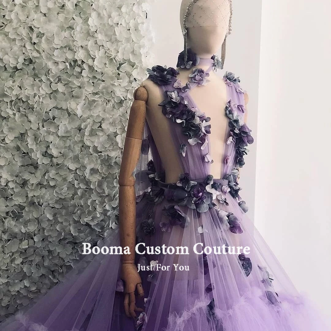 Женское прозрачное вечернее платье Booma, фиолетовое Тюлевое платье-трапеция с глубоким V-образным вырезом и цветами, длинное свадебное платье для выпускного вечера