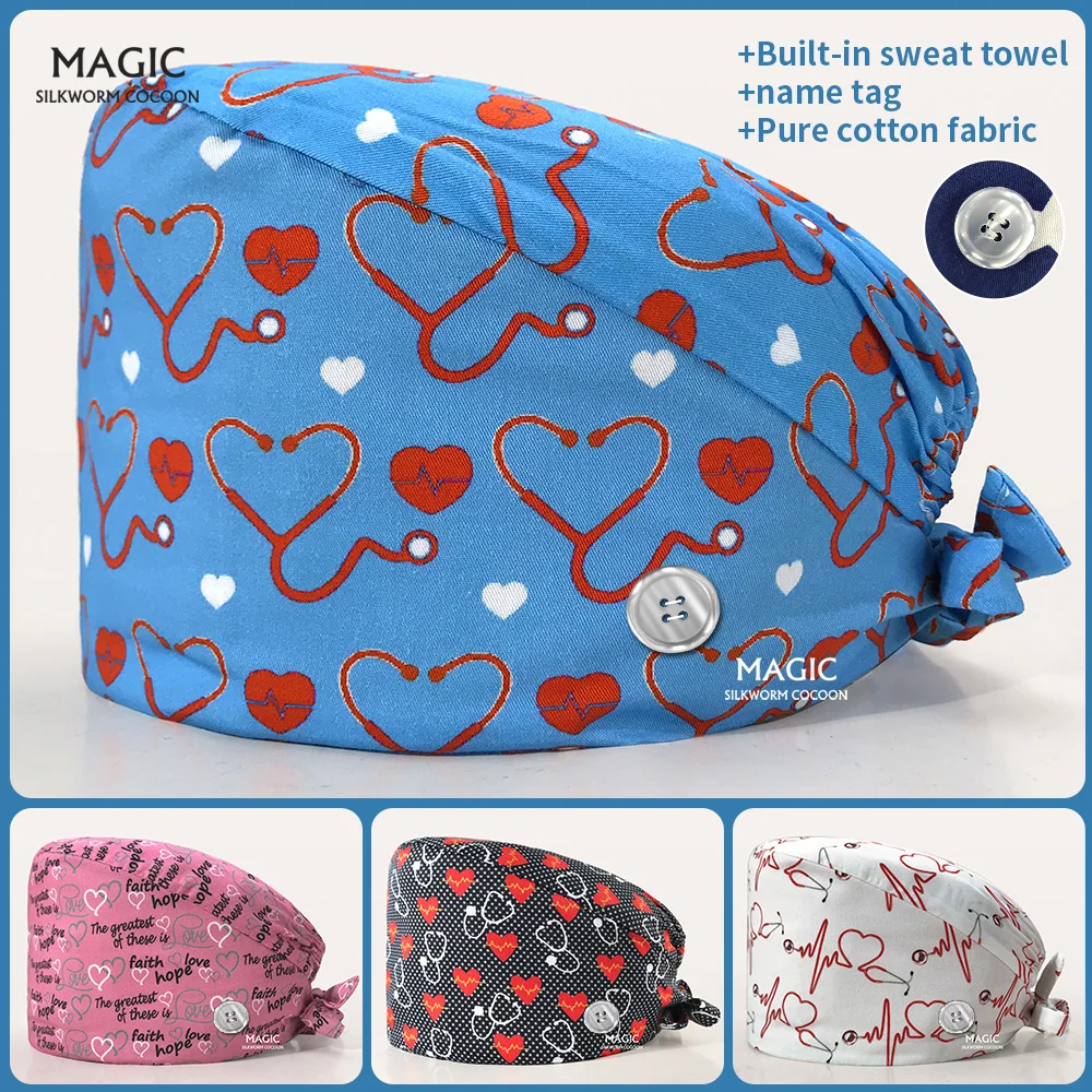 Новые хлопковые головные уборы для домашних животных, больниц, врачей, операционных, медицинских печати, впитывающие пот головные уборы, головные уборы для стоматологических клиник