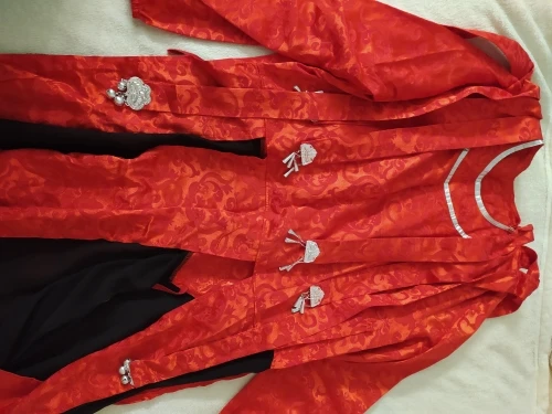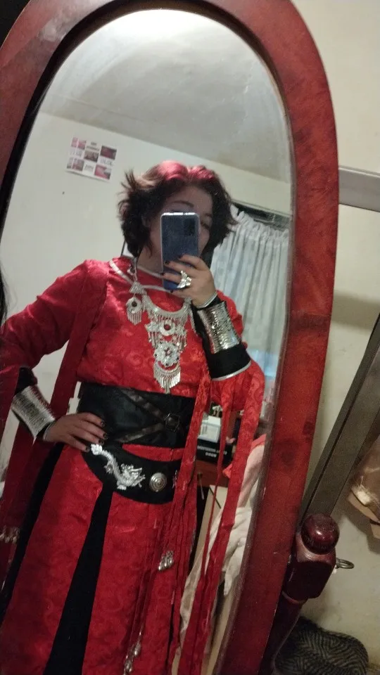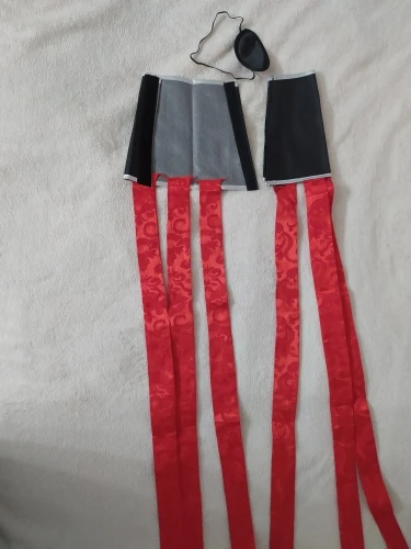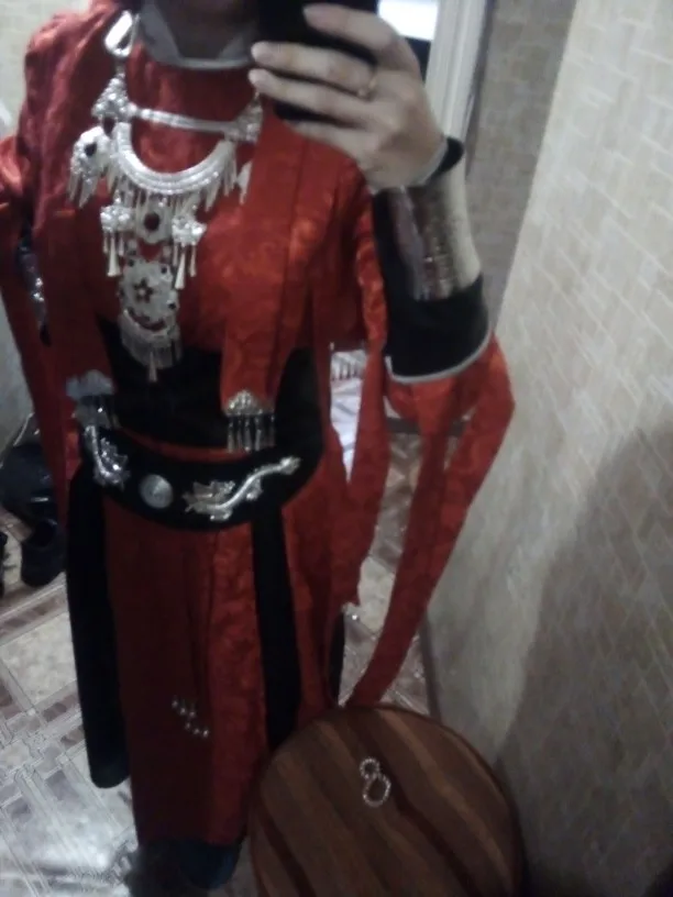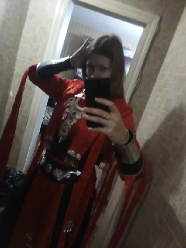 от пояса частично отвалилась деталь, но я её легко пришил обратно, а так хороший костюм, с приятной для тела тканью. Очень много бубенчиков, при ходьбе звеню :) так же вместе с костюмом шло кольцо, и повязка (второе фото), что было приятно заметить.