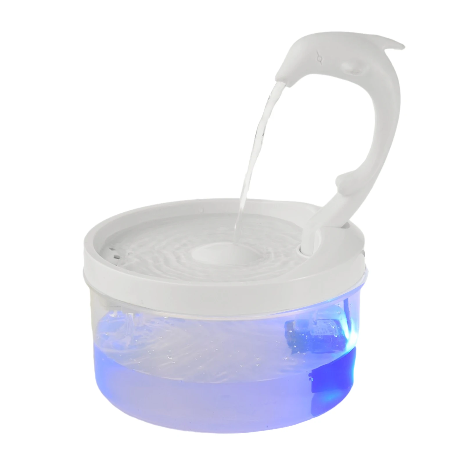 1. Жилая пружина диспенсер для воды: в форме дельфина, фонтан, который имитирует поток крана очаровывает животных, и рекомендует домашним животным пить больше воды, не боясь.2. Высокоэффективная система фильтрации: многократная очистка s может очищать и смягчать воду, фильтруя волосы, осадки и примеси, чтобы получить больше кислорода и свежести.3. С синим светодиодный функцией: кошки и собаки могут безопасно пить воду ночью.4. Легко чистить: кошачий фонтан изготовлен из высококачественного АБС-пластика и полипропилена, который легко разбирается и очищается. Прозрачная коробка позволяет наблюдать за количеством наполнения в любое время.5. Сверхтихая работа: не нужно беспокоиться о беспокойстве вас и вашего питомца.