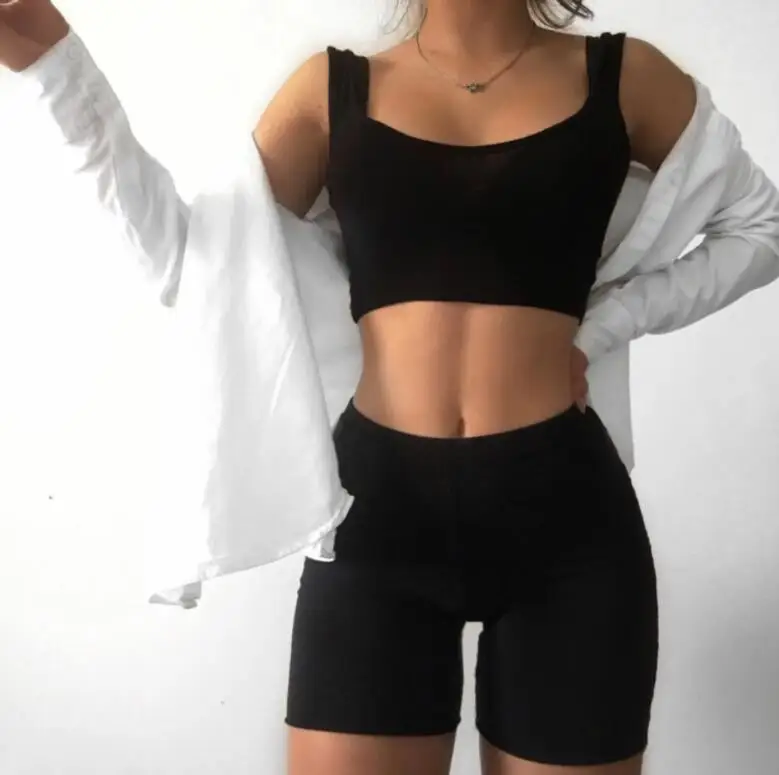 Шорты для фитнеса, эластичные топы, леггинсы, черные, белые, серые ...