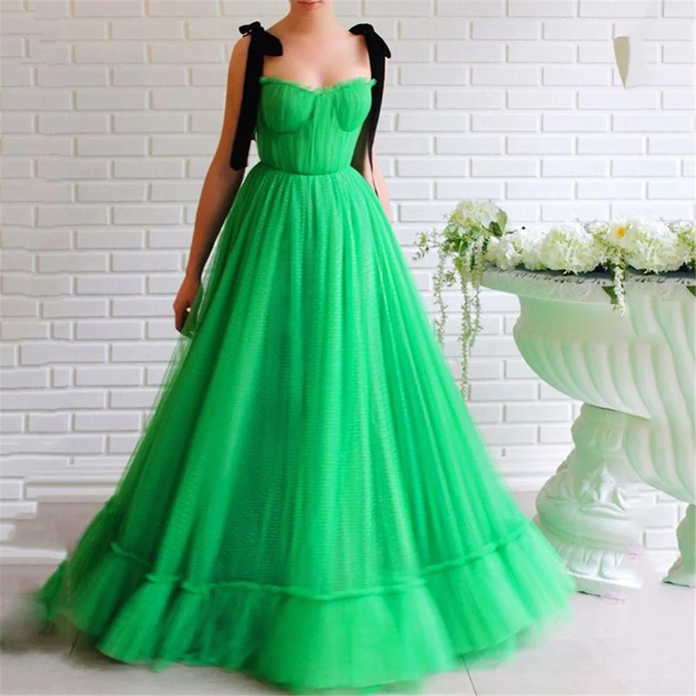 Платье ТРАПЕЦИЕВИДНОЕ для выпускного вечера, длинное, с лентами