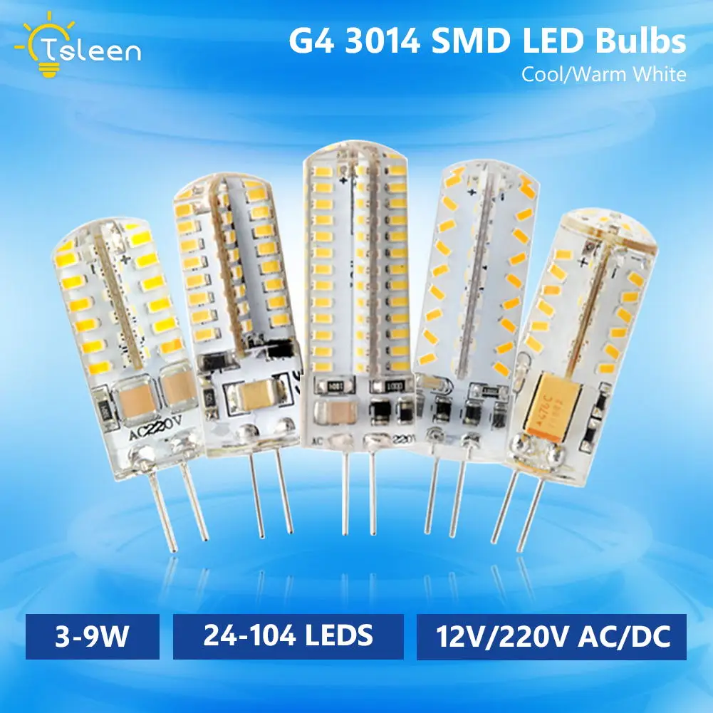 G4 лампы светодиодный Кристалл Лампа 220V 12V ACDC галогенные светильник люстра светильник G4 3014 SMD заменить 3W 5W 6W 8W 9W Светодиодная силиконовая лампочка