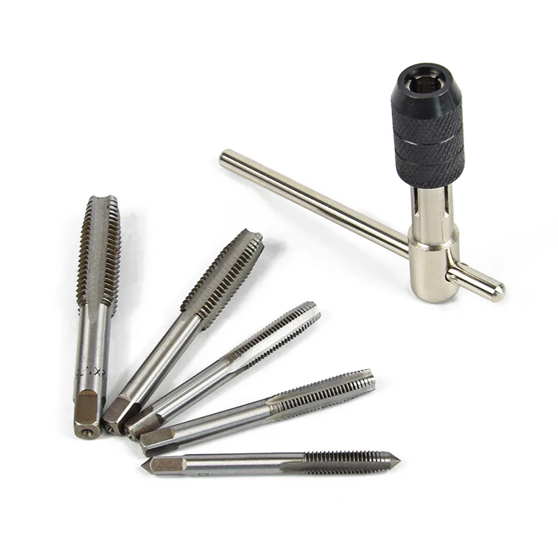 Новинка 6 шт.компл. ручной винт метрического резьбового станка метчики развертка M6M7M8M10M12 набор инструментов Ручка DIY гаечный ключ аксессуары
