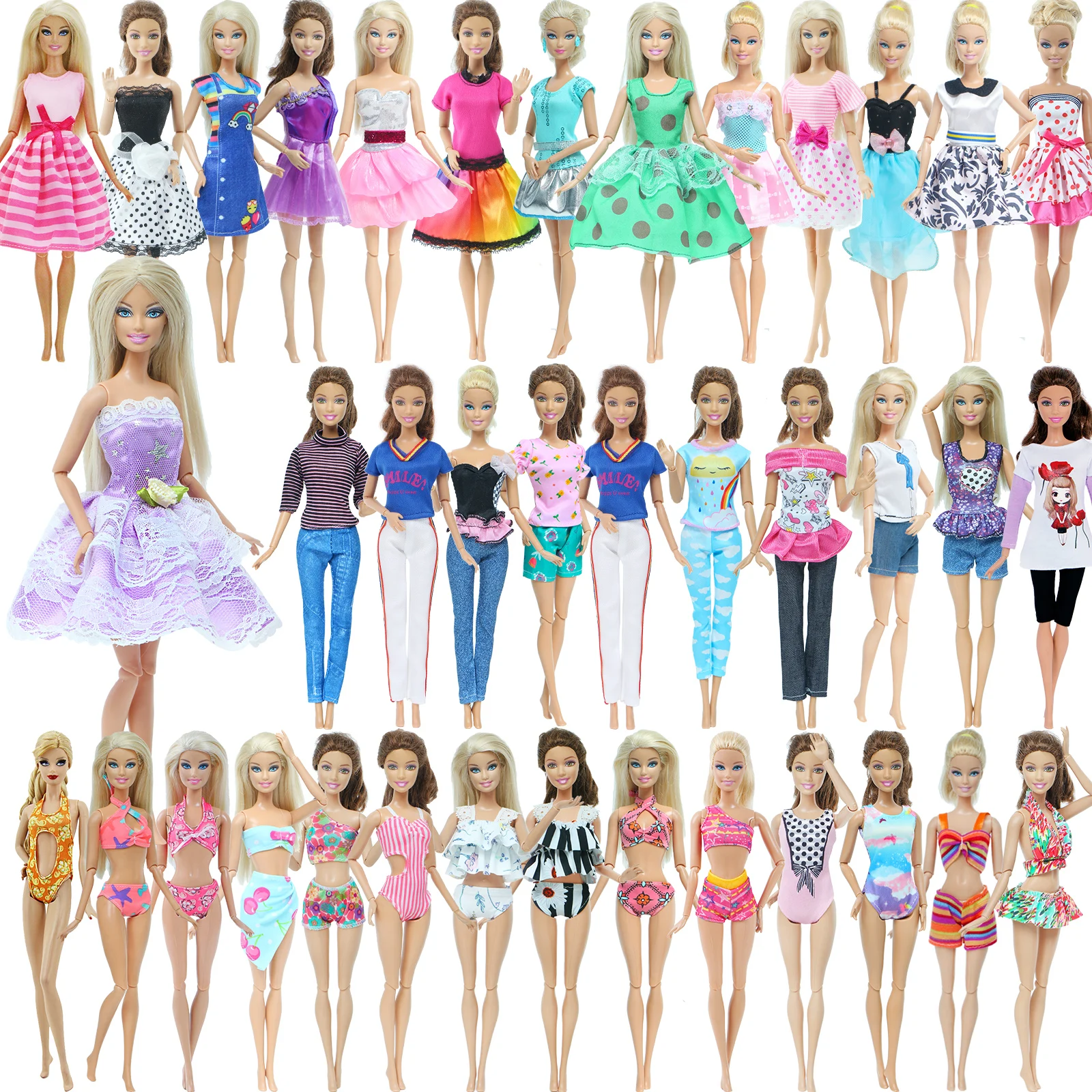 5 шт.лот = 2 комплекта купальников бикини + 2 шт. платье юбка + 1 шт. наряд Повседневная Одежда для куклы Барби DIY детские игрушки DIY