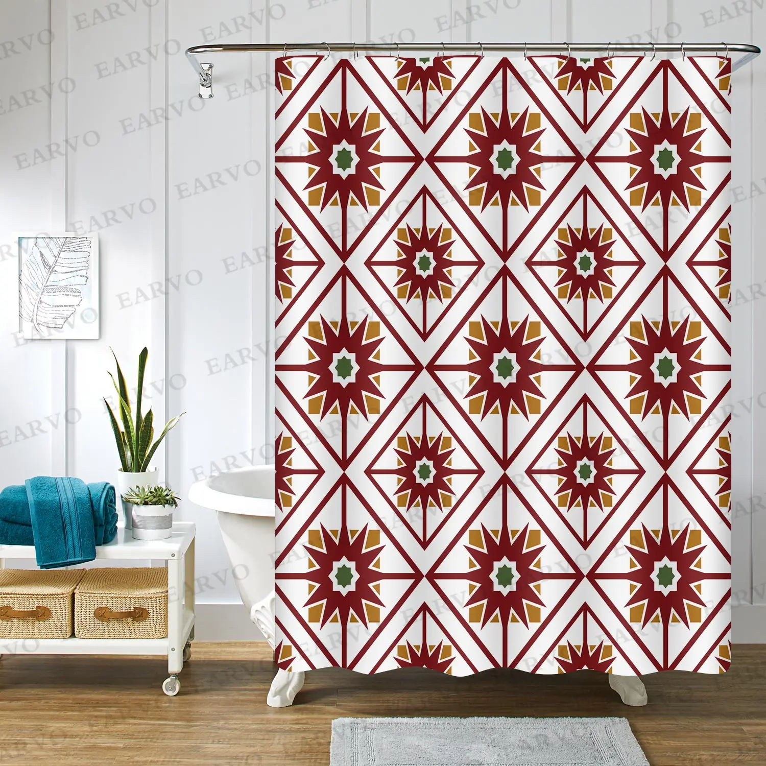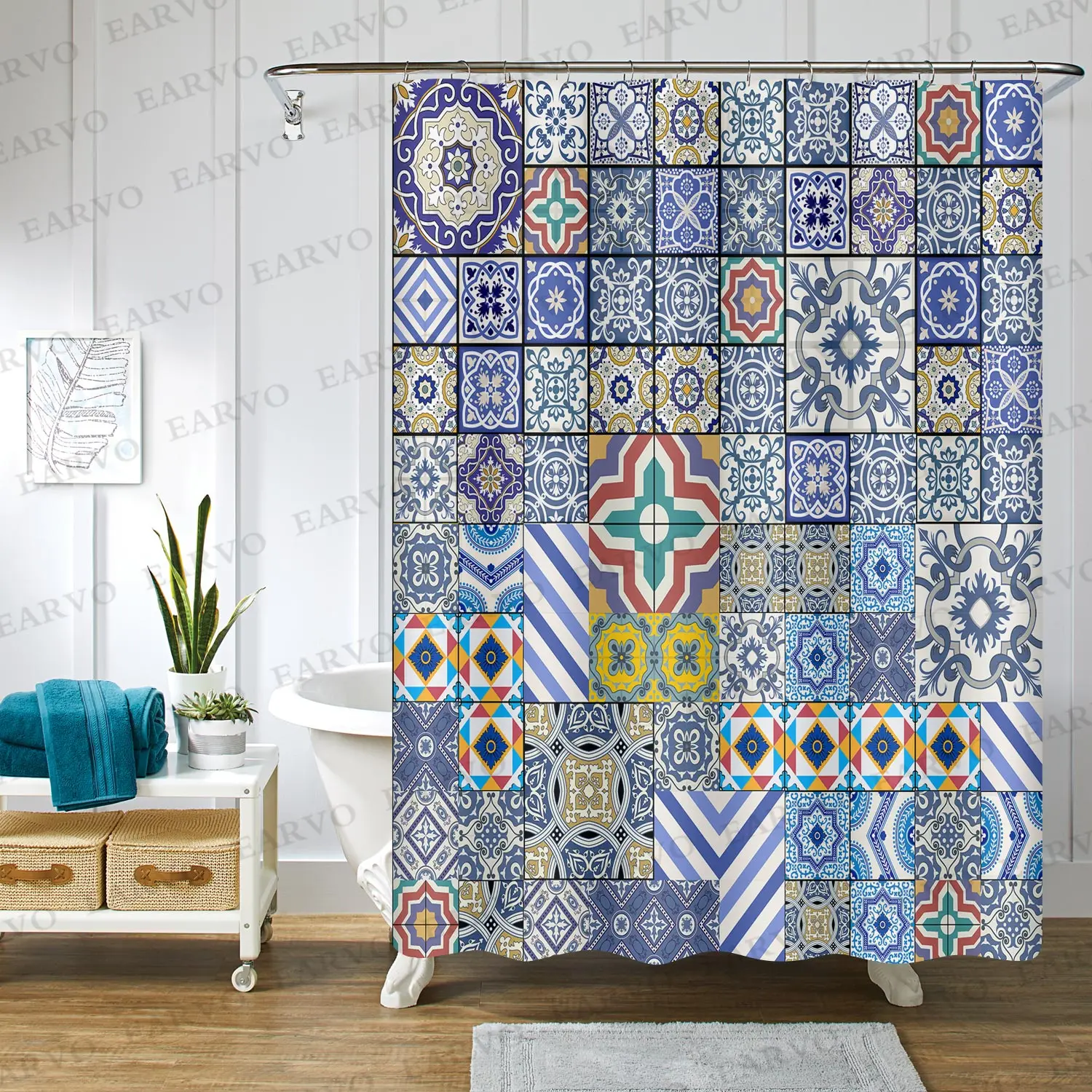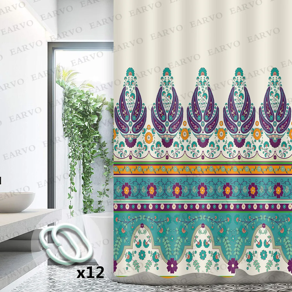 Занавеска для душа с рисунком мандалы, водонепроницаемый s-образный...