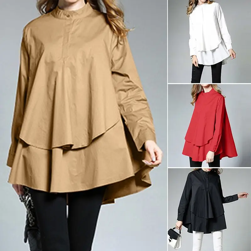 Элегантные весенние женские рубашки ZANZEA, 2021, повседневные блузы с длинным рукавом, женские блузы на пуговицах, топы большого размера, асимметричные Блузы
