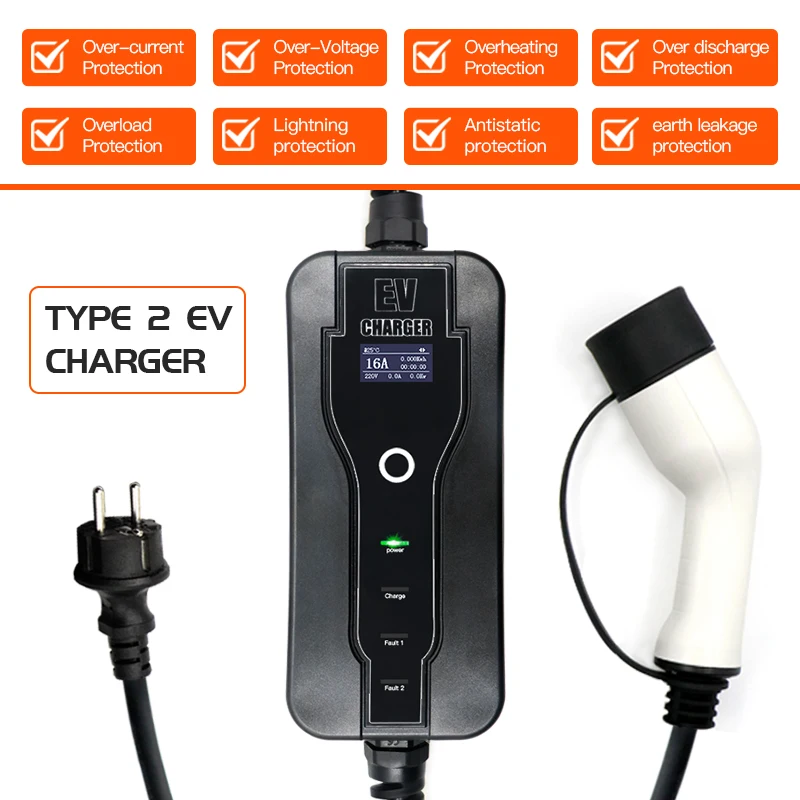 1. Разъем для зарядки: 7 контактов (соответствует стандарту IEC 62196-2)2. Разъем питания: штепсельная вилка Schuko3. Длина шнура зарядного устройства: 5 м4. Номинальное Напряжение: 220/250V5. Номинальный ток: 16A6. Рабочая температура: -30 ℃ ~ + 55 ℃7. Рекомендуется использовать в помещении8. CE признанный компонент