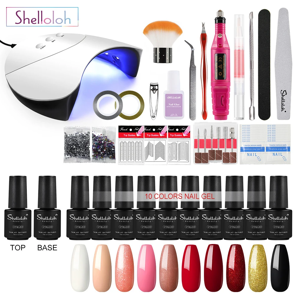Набор для маникюра Shelloloh, набор для ногтей со светодиодной лампой, отмачиваемый маникюрным аппаратом, гель-лаками и гель-лаками