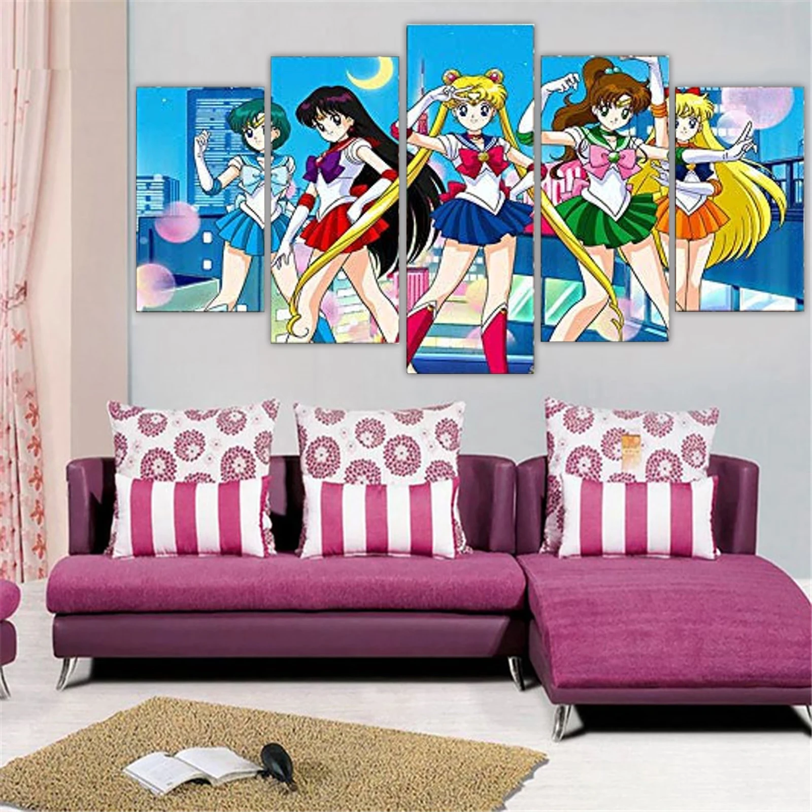 5 шт. настенное искусство на холсте аниме манга современный модульный декор картины Луна Плакаты для девочек домашний декор картины украшение спальни