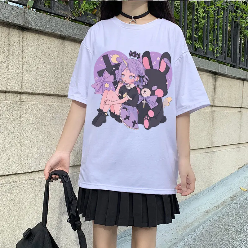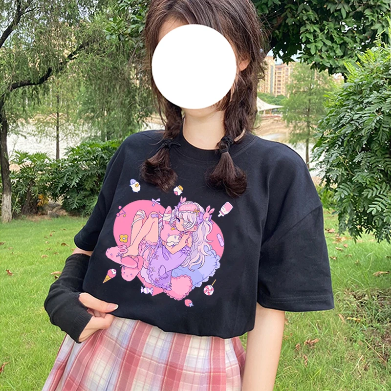 Футболка женская в японском стиле Харадзюку, мультяшная японская шк...