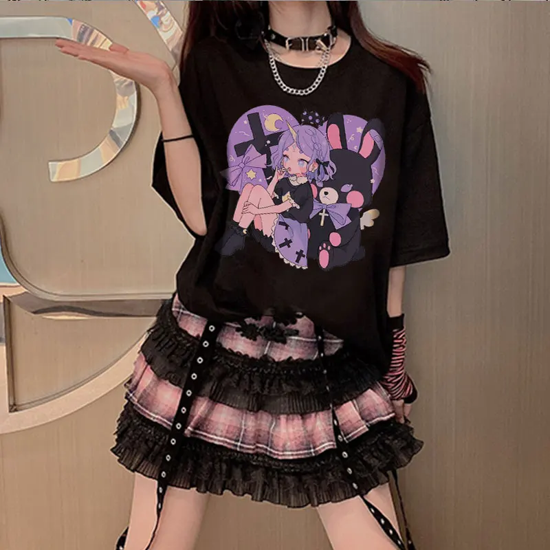 Футболка Harajuka, летняя, в готическом стиле, винтажная, с коротки...