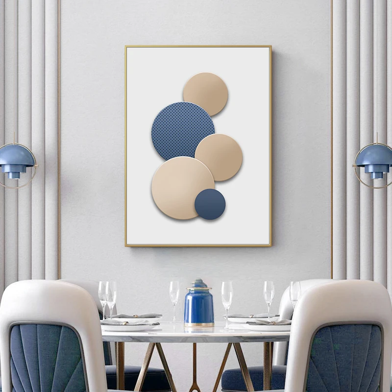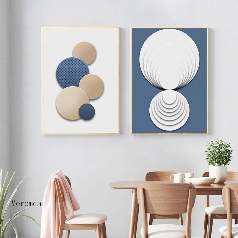 Абстрактная Настенная картина синий белый золотой круг и Толстая ли...