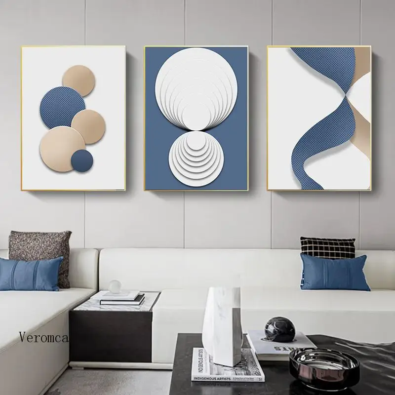Современный абстрактный постер в скандинавском стиле золотого, синего, белого цветов, 3 предмета, холст, настенная живопись, картины для гостиной, домашний декор