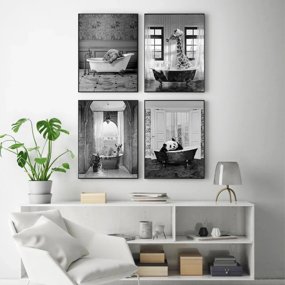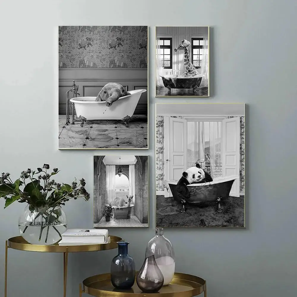 Картины в ванной черно-белые животные Панда Холст Плакаты и принты ...