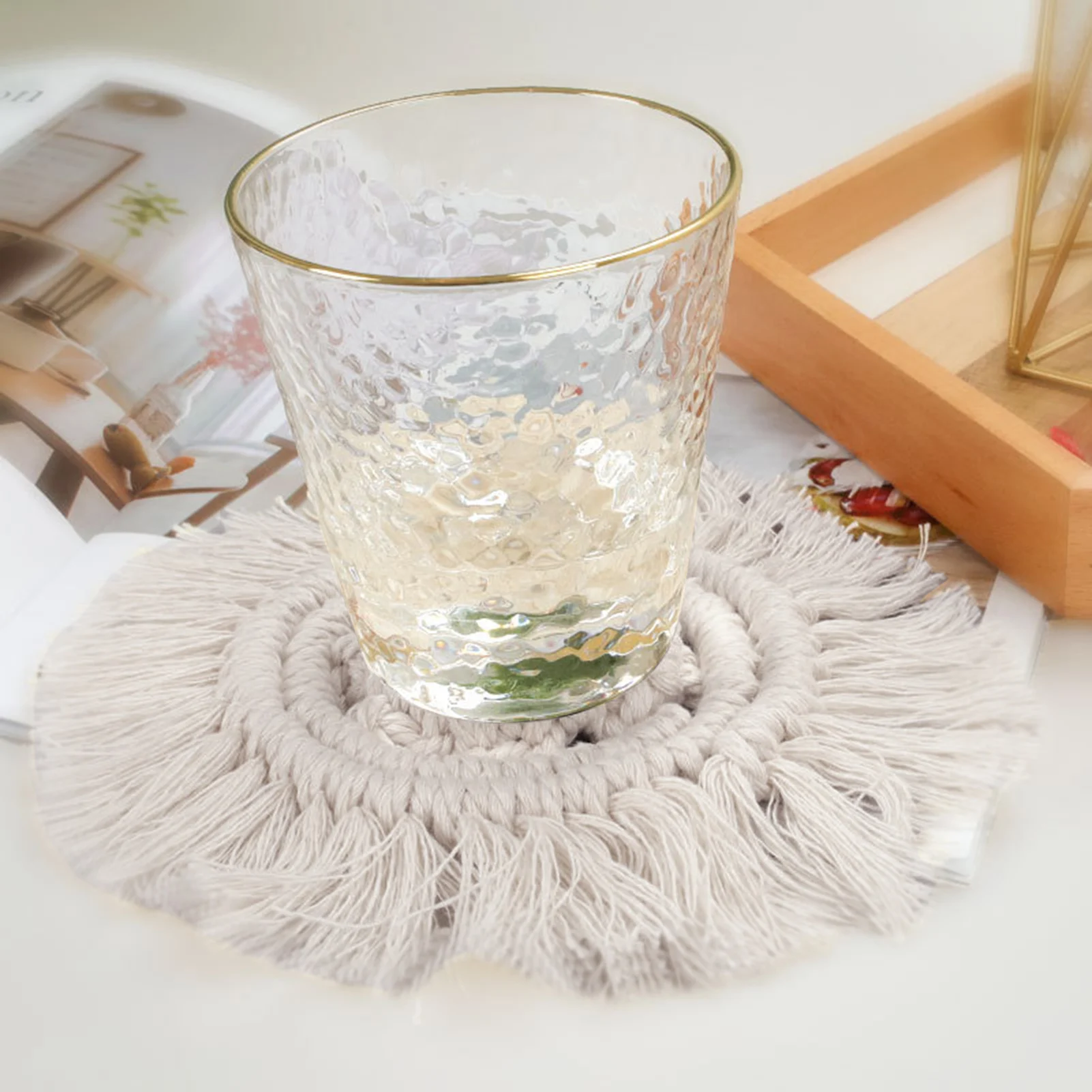 Тканые подставки в стиле бохо, изолированные тканые подставки под ч...