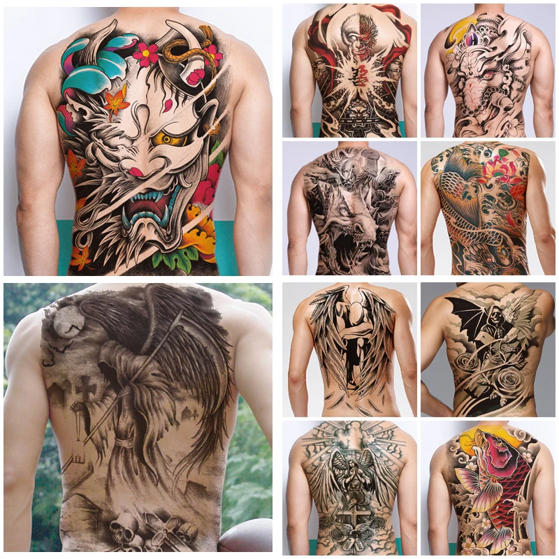 Временная татуировка для мужчин, Большая водонепроницаемая наклейка на тело с дьявольским карпом, Переводные крутые татуировки