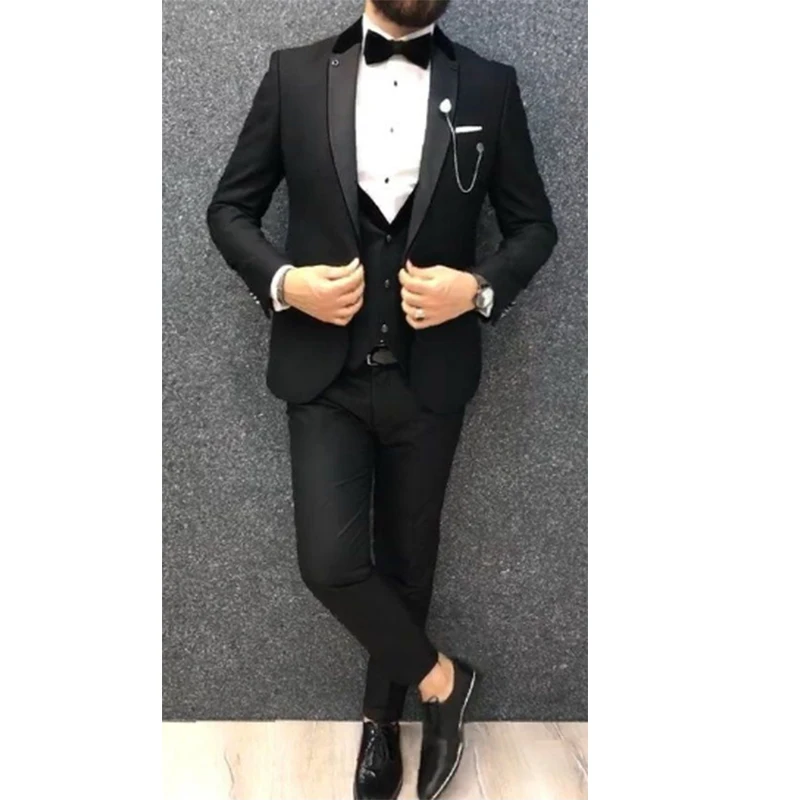 Новые черные мужские костюмы из 3 предметов с заостренными лацканам...