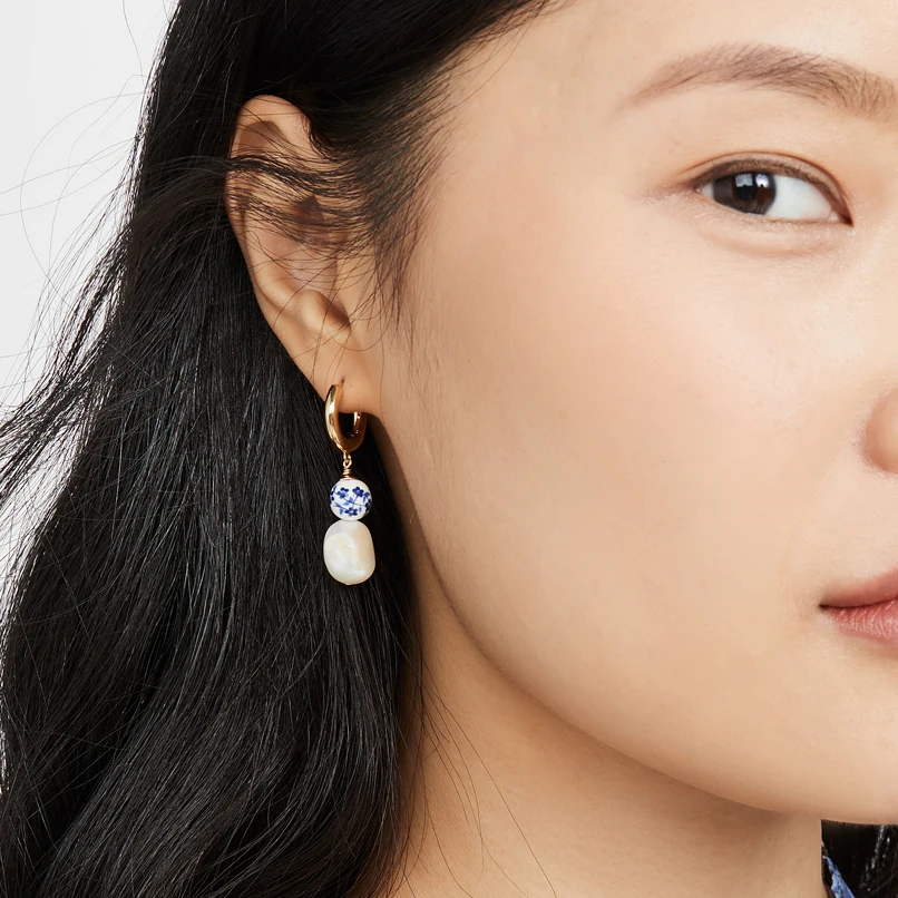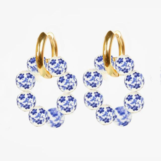 Женские серьги-подвески в этническом китайском стиле с натуральными камнями, синими цветами, керамическими бусинами, Новое поступление, оптовая продажа