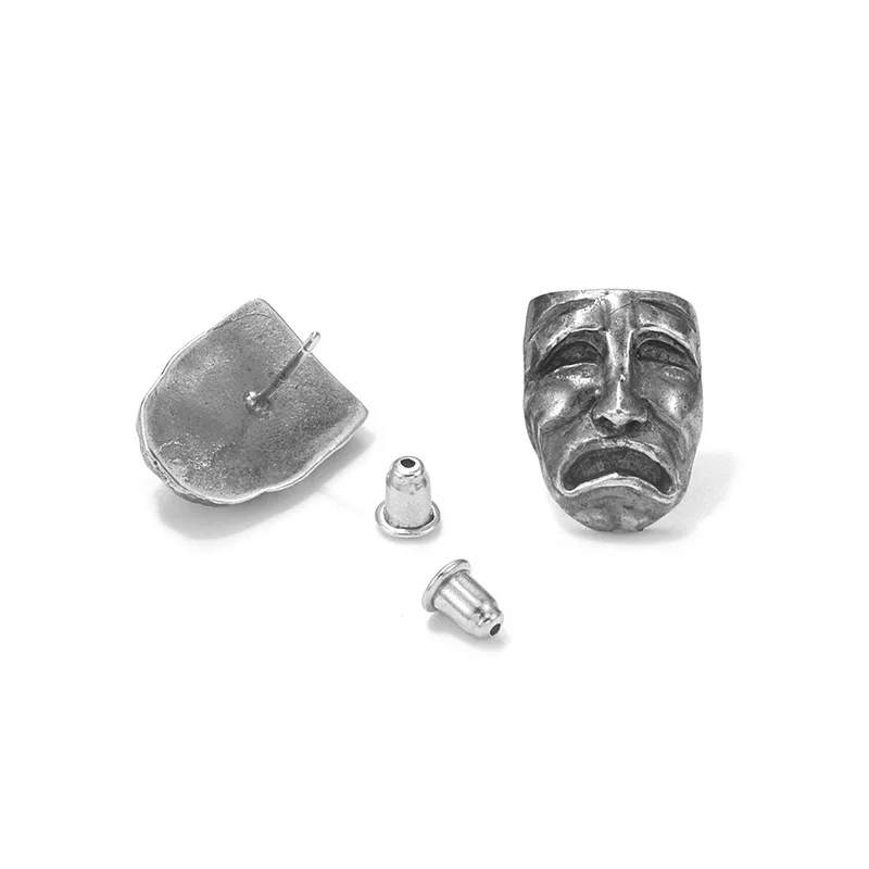 Винтажные серьги-гвоздики в виде маски клоуна серебристого цвета, индивидуальные серьги в виде лица с улыбающимся лицом и плачем, ювелирные украшения для мотоцикла вечерние в стиле панк