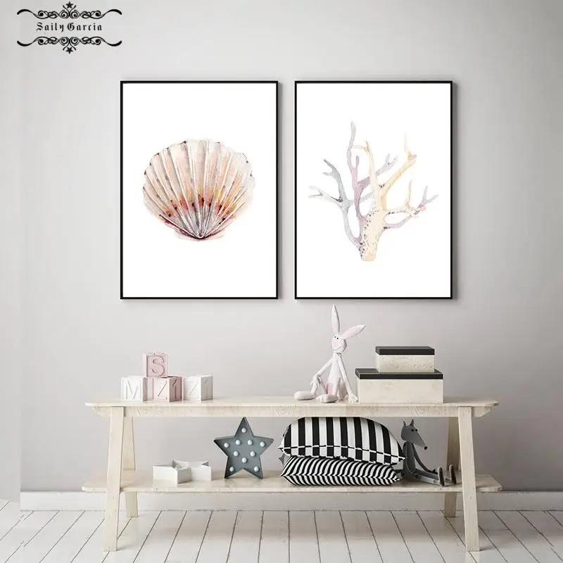 Минималистичный акварельный морской постер Морская звезда Коралловая Медуза океанская жизнь холст живопись настенное Искусство Картины домашний интерьер Декор