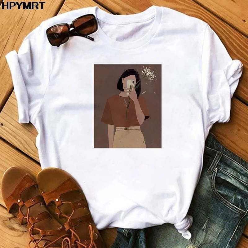 Футболка женская с мультяшным принтом, милая Дамская рубашка с граф...