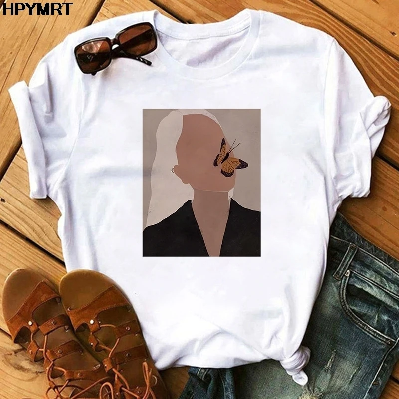 Женская футболка с принтом бабочки, топы, футболки с коротким рукав...