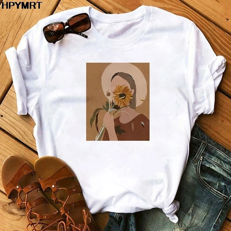 Женская Новинка 2020 harajuku белая футболка с винтажным цветочным ...