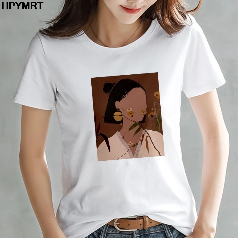 Женская футболка с абстрактным принтом, новая летняя повседневная женская футболка, модная футболка в стиле Харадзюку, Забавные топы с коротким рукавом, футболка, одежда