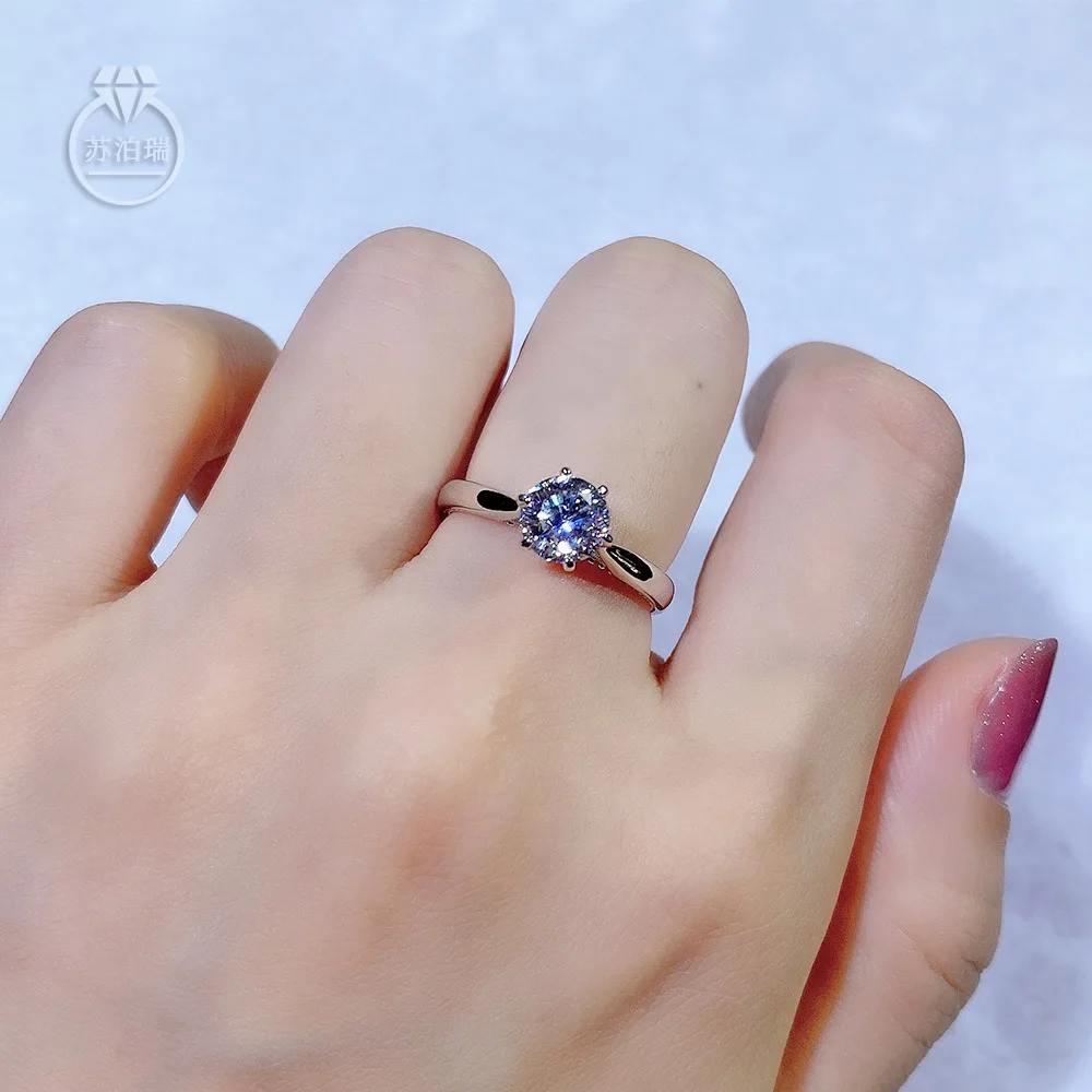 100% бриллиантовое кольцо с шестью когтями, Корона 1 карат, цвет 1 ...
