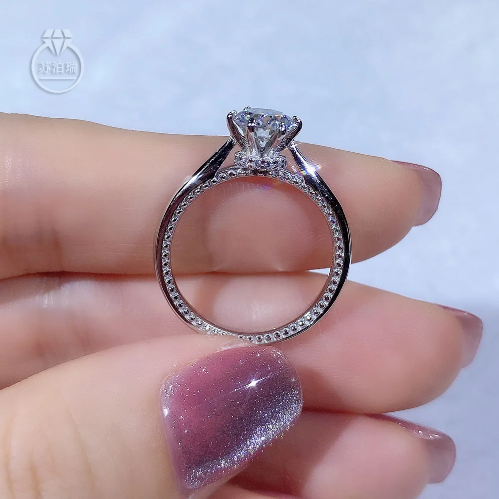 Оптовые Муассанит Бриллиантовые Кольца 925 Серебряное Обручальное Кольцо Классический Круглый Вырез Для Женщин Свадебный Подарок Размер 6,5 ММ 1,0 Карат