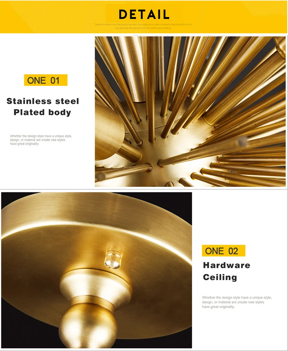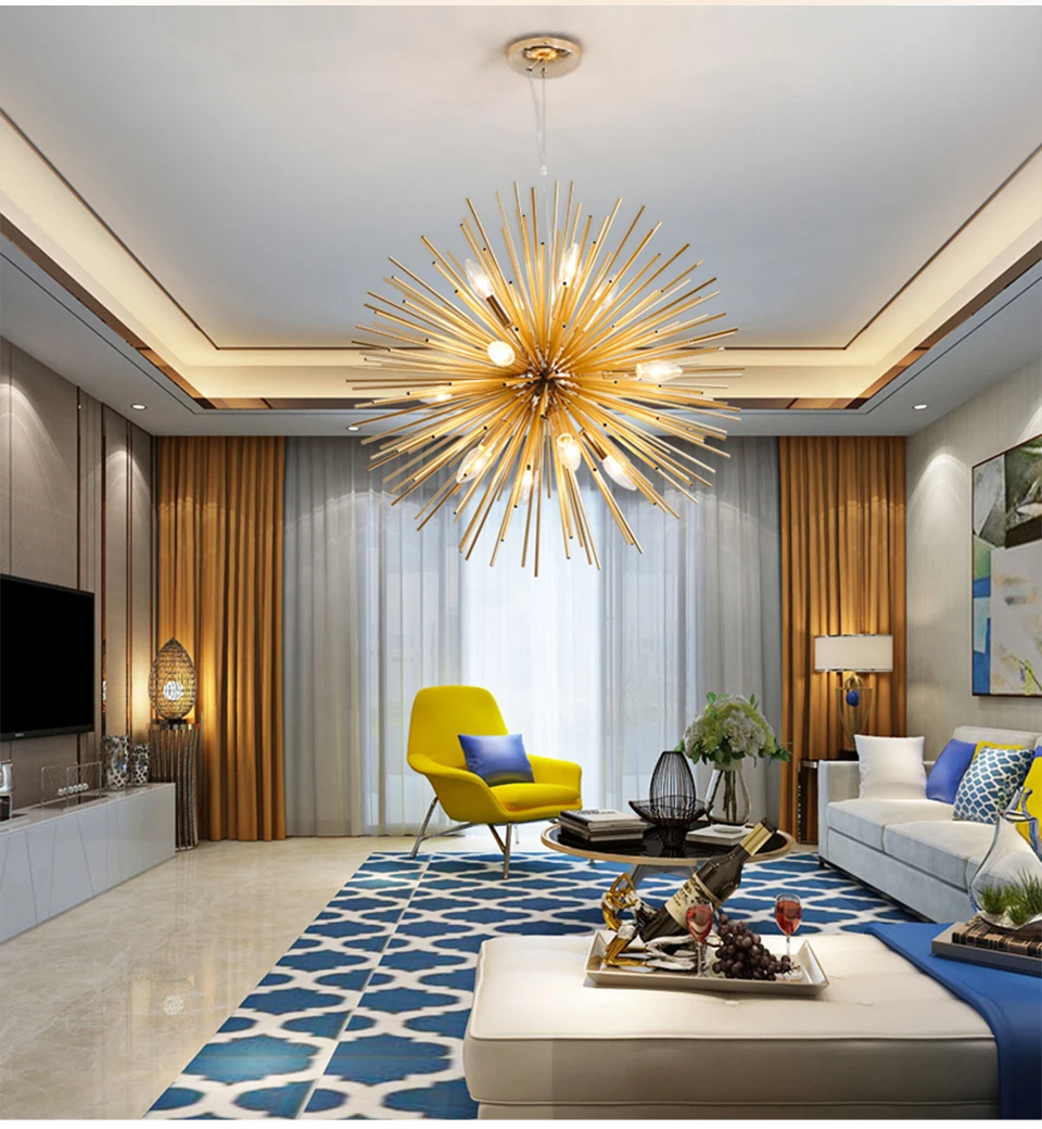 Золотая Фотолюминесцентная Подвесная лампа Sputnik для гостиной, Де...