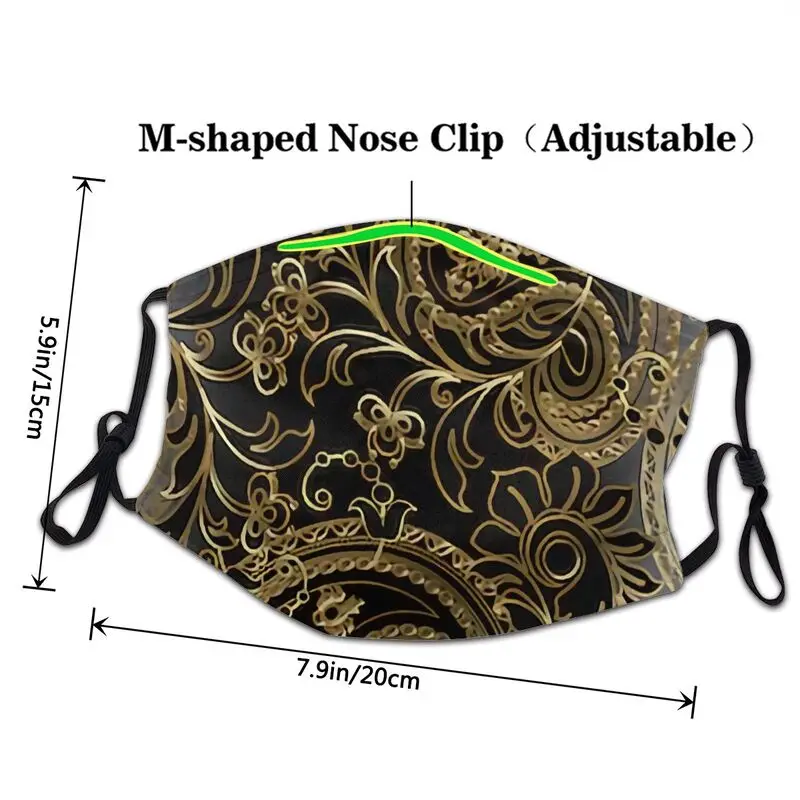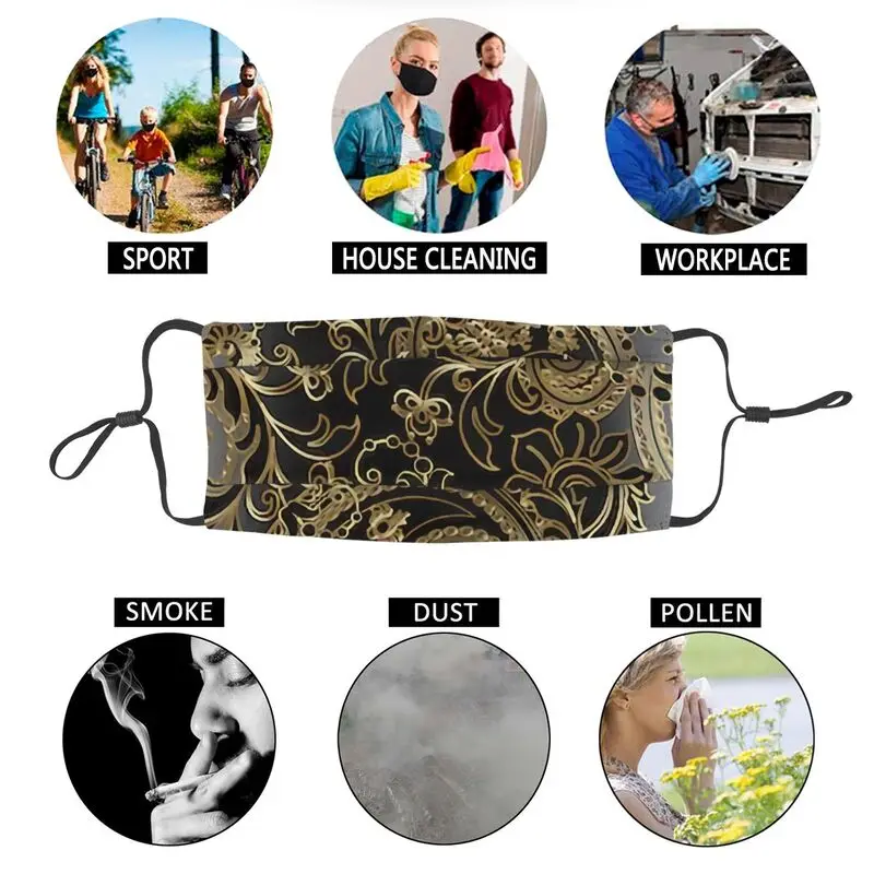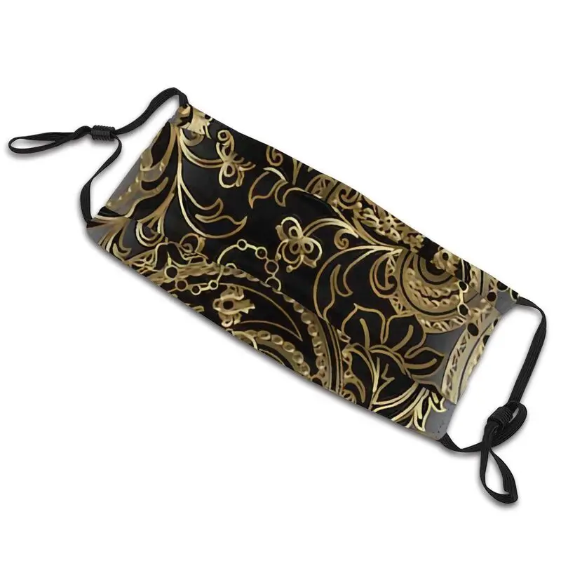 Thuth Винтаж 3D в виде золотого и черного Пейсли Цветы Листья многоразовые унисекс маска для лица для взрослых Защитная крышка респиратор рот муфельная печь