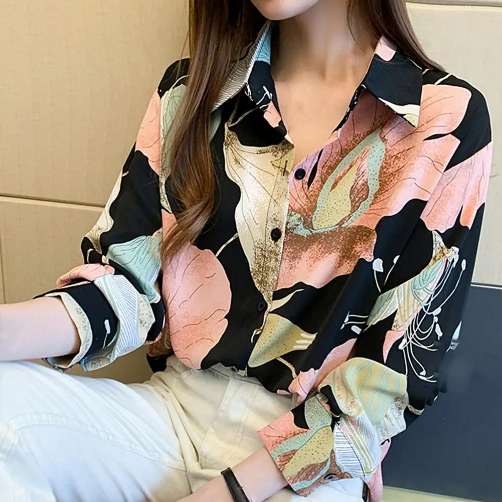 Рубашка женская однобортная с отложным воротником, блузка с длинным рукавом и цветочным принтом, одежда для женщин