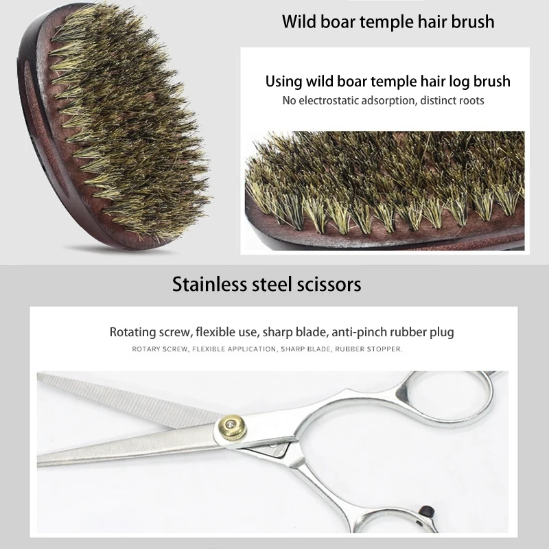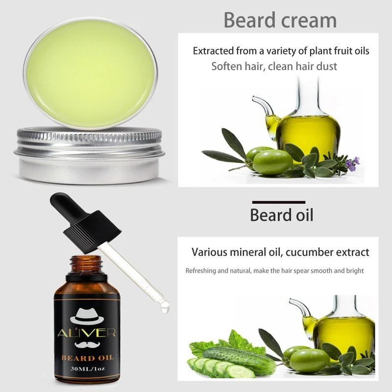 Аливер набор для ухода за бородой комплект для роста бороды с маслом для роста бороды Бальзам для бороды щетка для бороды гребень для бороды ножницы для бороды