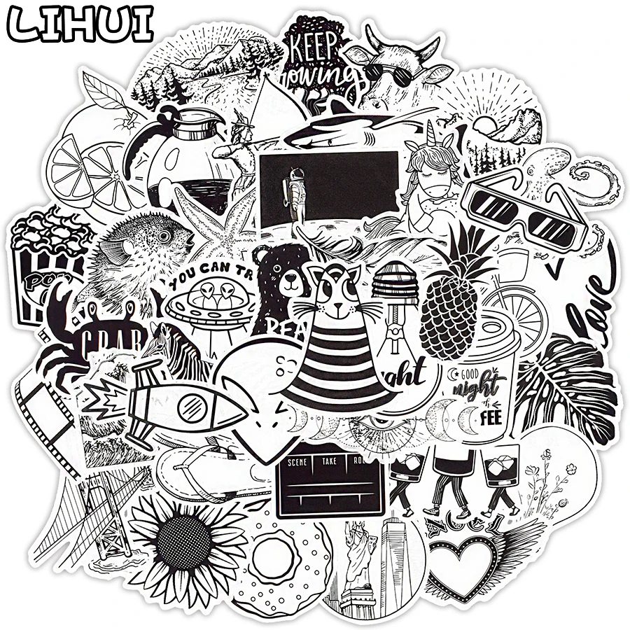 Наклейки черно-белые, 50 шт., аниме, Мультяшные, крутые, наклейки, ...