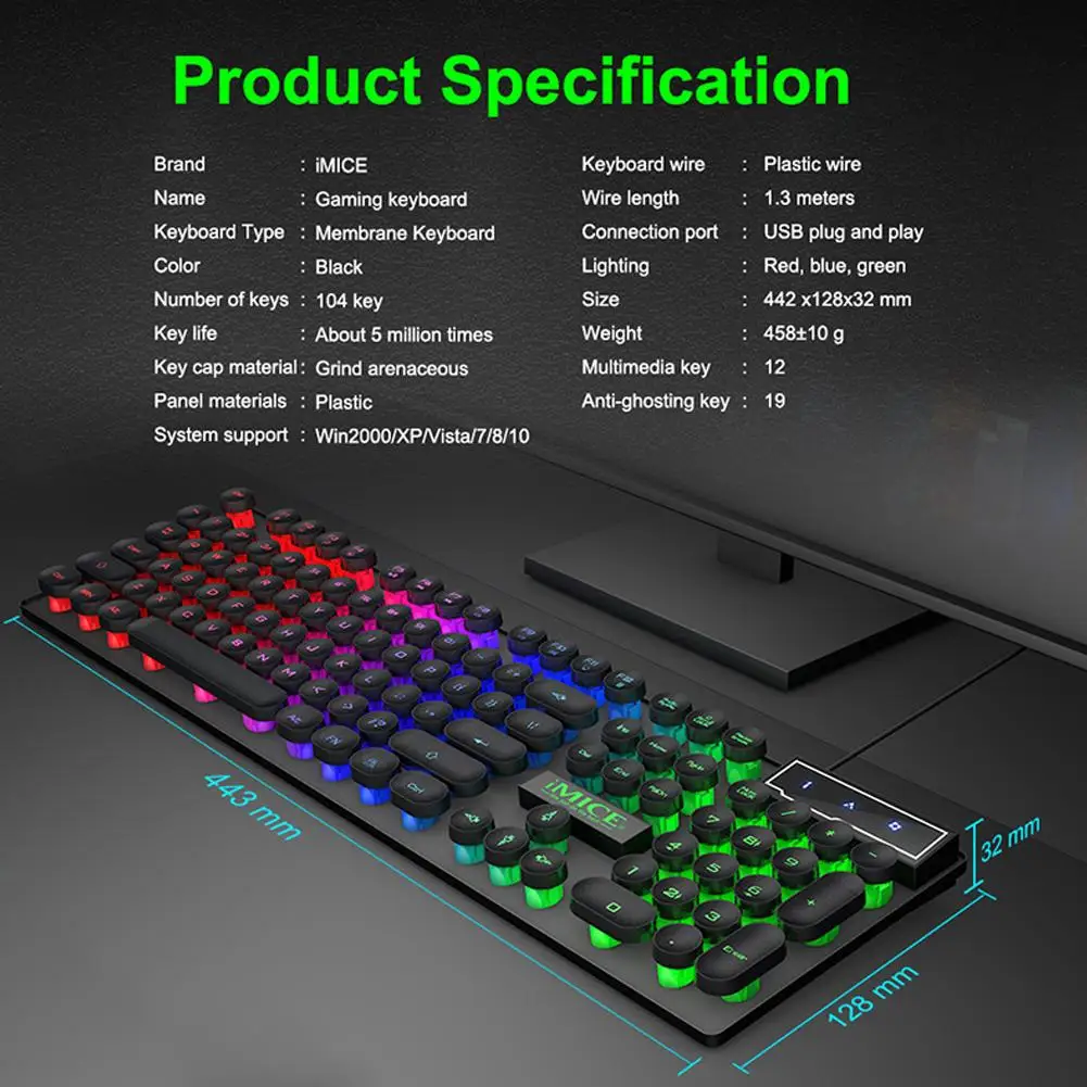 IMICE AK-800 новая игровая клавиатура USB Проводная Механическая Чувствительная игровая клавиатура с 104 клавишами RGB-подсветкой для Windows 2000XPVista7810