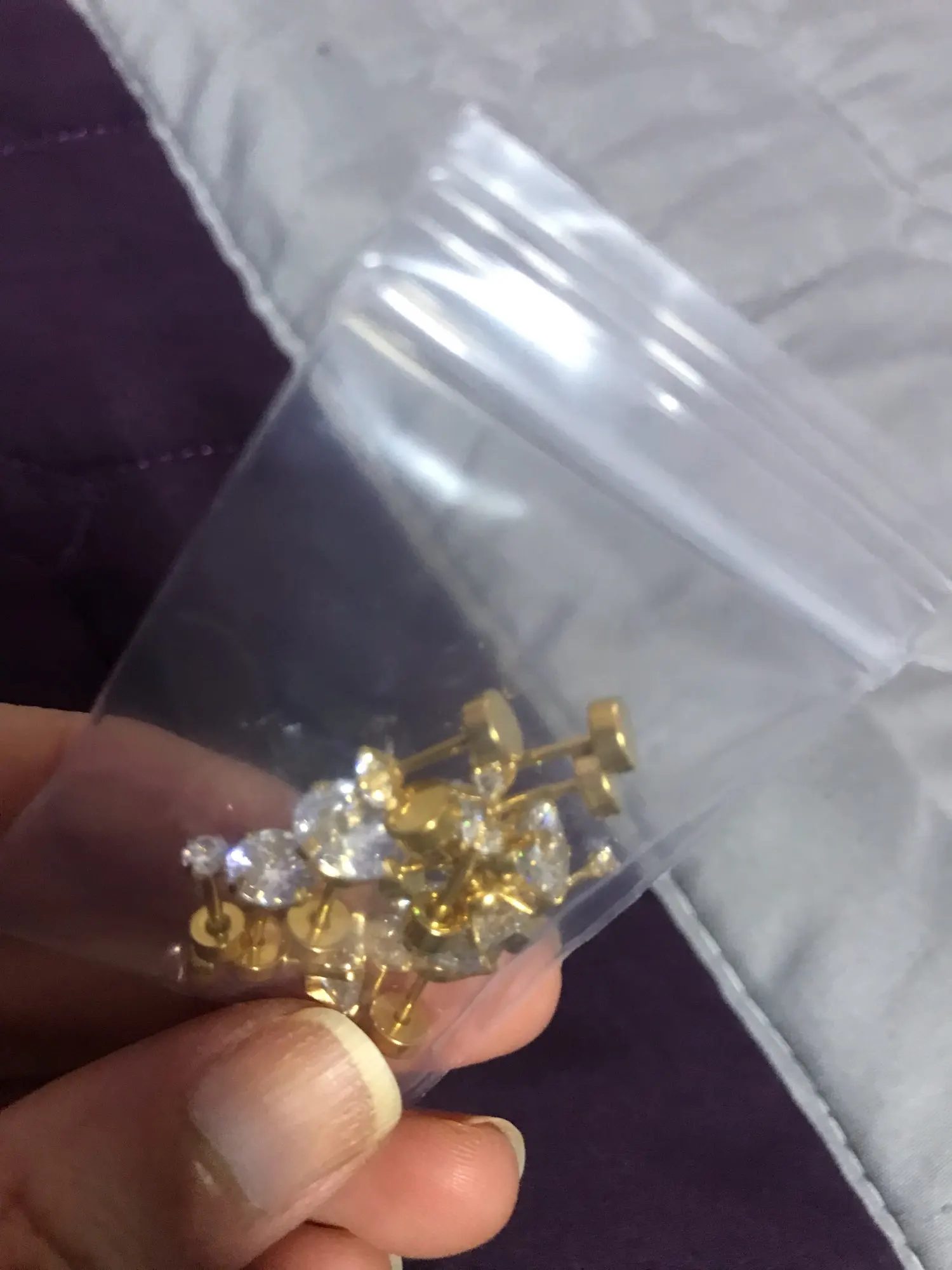 Заказала самые мелкие гвоздики, очень классные, как я и хотела, единственная проблема, не могла долго закрутить замочек, изучалась, ухо даже заболело может из-за длины ногтей такая проблема, но серьги супер!!! у меня две пары, золотые и под серебро.