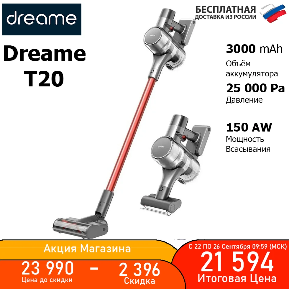 Ручной беспроводной пылесос Dreame T20, Вертикальный пылесос Dreame T20, Мощность всасывания 150 AW, Диагностика загрязнения