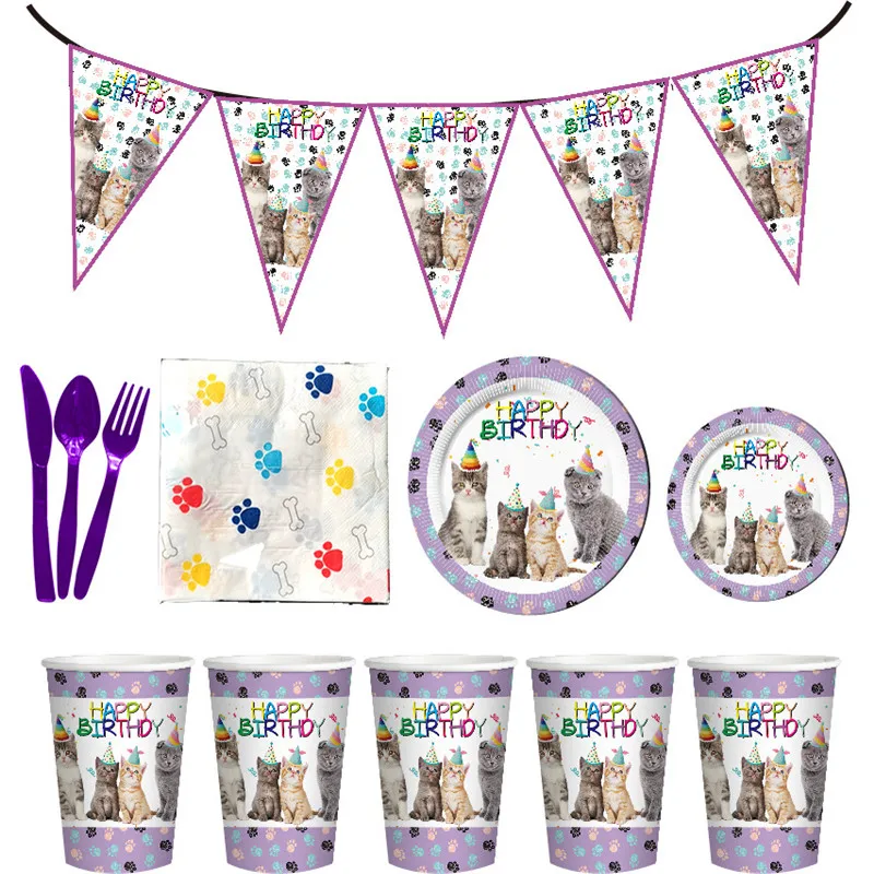 Домашние кошки домашних животных вечерние одноразовые столовые приборы одноразовые тарелки салфетки для стаканчиков Декор принадлежности для душа