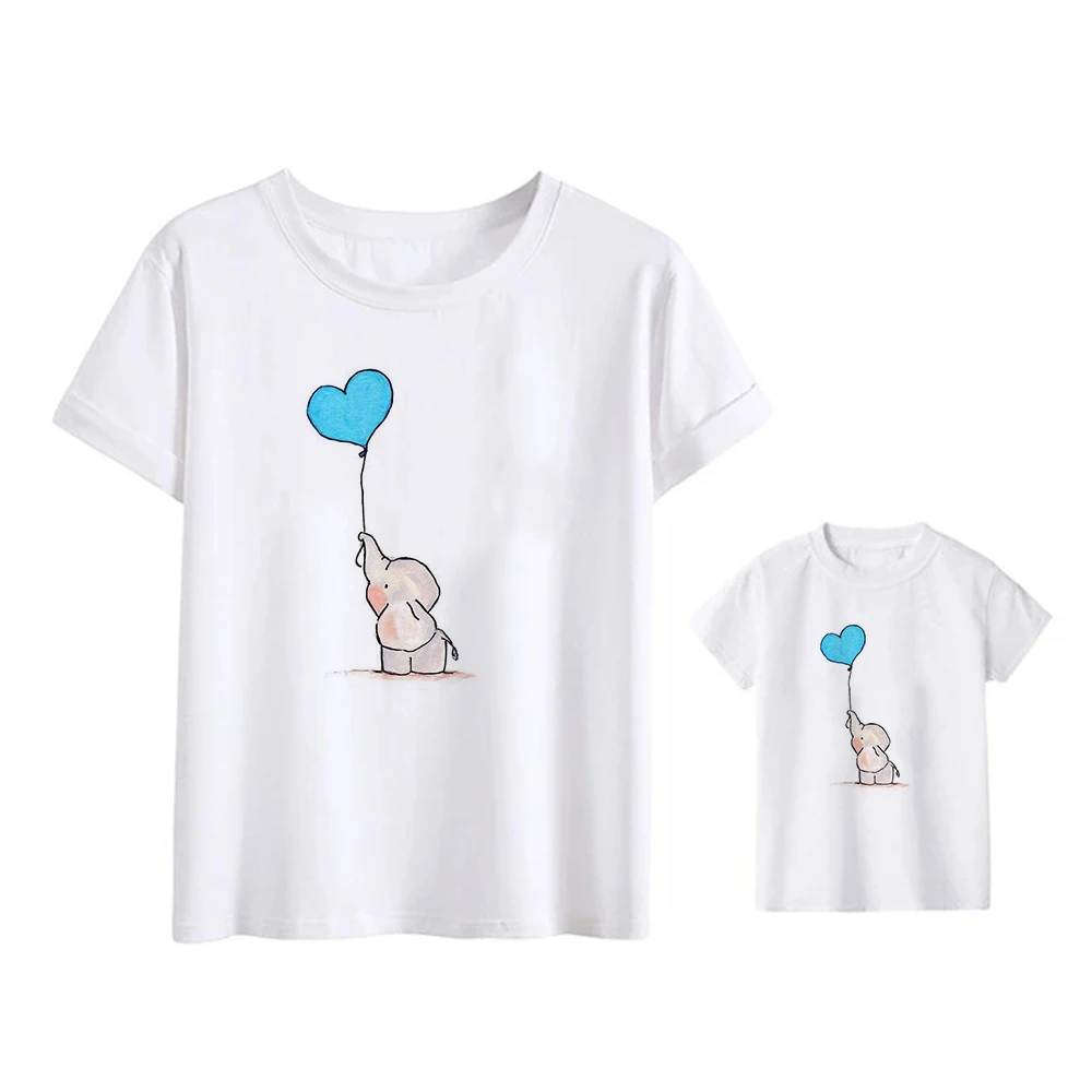 Летняя футболка для маленьких девочек и мальчиков, повседневные футболки унисекс для взрослых, Модная Слон Дамбо в стиле Харадзюку с героями мультфильмов, семейный образ